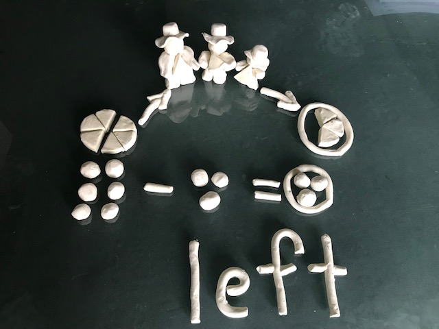 for: to the distance of; as far as [I pushed the baby in the stroller for 2kms ] for: in the amount of; at the price of [1 hat is $5, or 3 hats for $10] for: as compared with – there is one hat for each sibling for – as long as (“I rolled Madea in the stroller for 1 hour) for: at a certain time (“I have a dentist appointment for 2:30”) left: the quantity remaining after subtraction is completed [There are 3 pieces of pizza left after 3 kids ate 1 piece each] into: as a group contained within [three kids into 6 pieces of pizza is two each]